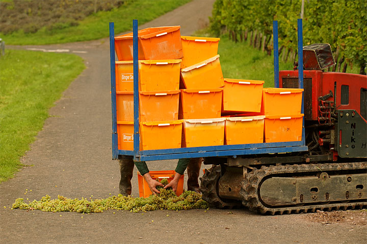 Kurze Unterweisung und dann sollte das auch kein Problem mehr sein. Unvernunft und zu wagemutiges Fahren wird direkt bestraft, wenn die Kisten mit den Trauben auf der Straße liegen und wieder händisch in diese verladen werden müssen.