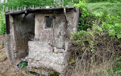 Auch so eine Art Hütte, aber mit einem Kreuz auf dem Dach und