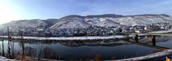 Winter an der Mosel, Januar 2004 Schneebedeckte Weinberge an der Mosel, ein seltener Anblick. Die Kraft der Sonne reicht auch bei Minusgraden aus, den Schnee auf den südorientierten Weinbergen innerhalb einiger Tage weg zu schmelzen. Weil uns das Schneebild so gut gefallen hat, haben wir das ganze auch bei Nacht fotografiert. Das